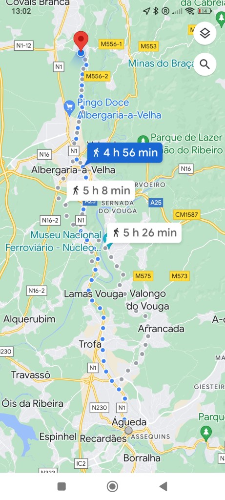 Demain étape numéro 12 de 26 kms. de Albergaria-a-nova à Santa Maria da Freita. Étape longue et au relief orographique « intéressant », donc départ à 5 heures max.