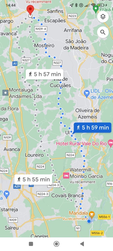 Itinéraire de l’ étape Albergaria-a-nova/ Santa Maria da Freita via Branca, Oliveira de Azeméis, Vila de Cucujães et Santa Maria da Freita.