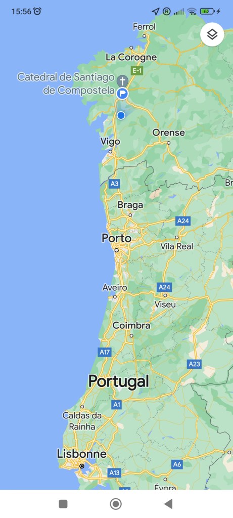 Demain dernière étape, sDlv, du « camino de Santiago de Compostela » (portugais). Étape longue de 30 kms. et dure par l’horographie, espérons que le temps ( au moins) soit clément.